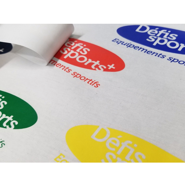Technique d’impression de transfert à chaud : transferts numériques pour les logos couleurs (impression également de bâches et adhésifs), transferts sérigraphiques, transferts flex (vinyl thermo-adhésif), écussons thermo-brodés…